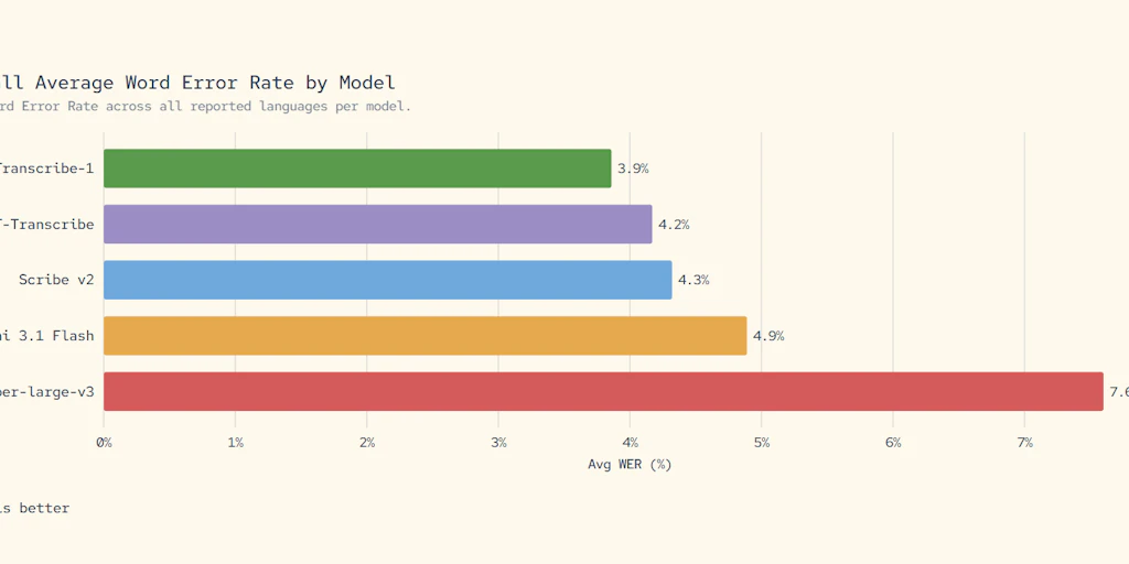 🧠 MAI-Transcribe-1 atteint 92% d'exactitude sur la transcription d'audio multilingue bruité...